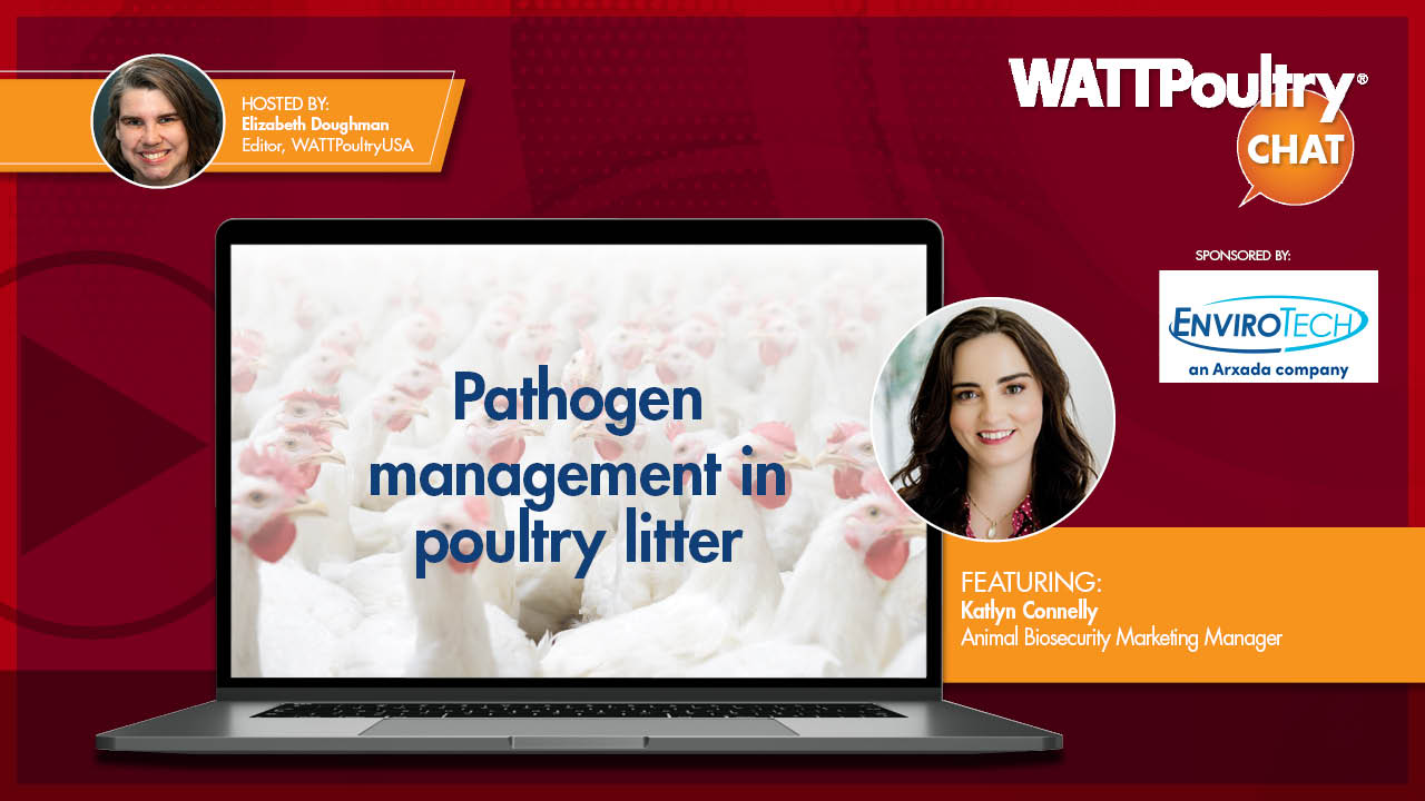 Elizabeth Doughman, editor, WATT PoultryUSA and Poultry Future: Hello and welcome to WATT Poultry Chat. I'm Elizabeth Doughman, the editor of WATT PoultryUSA and Poultry Future. This WATT Poultry Chat is brought to you by Enviro Tech, an Arxada Company …